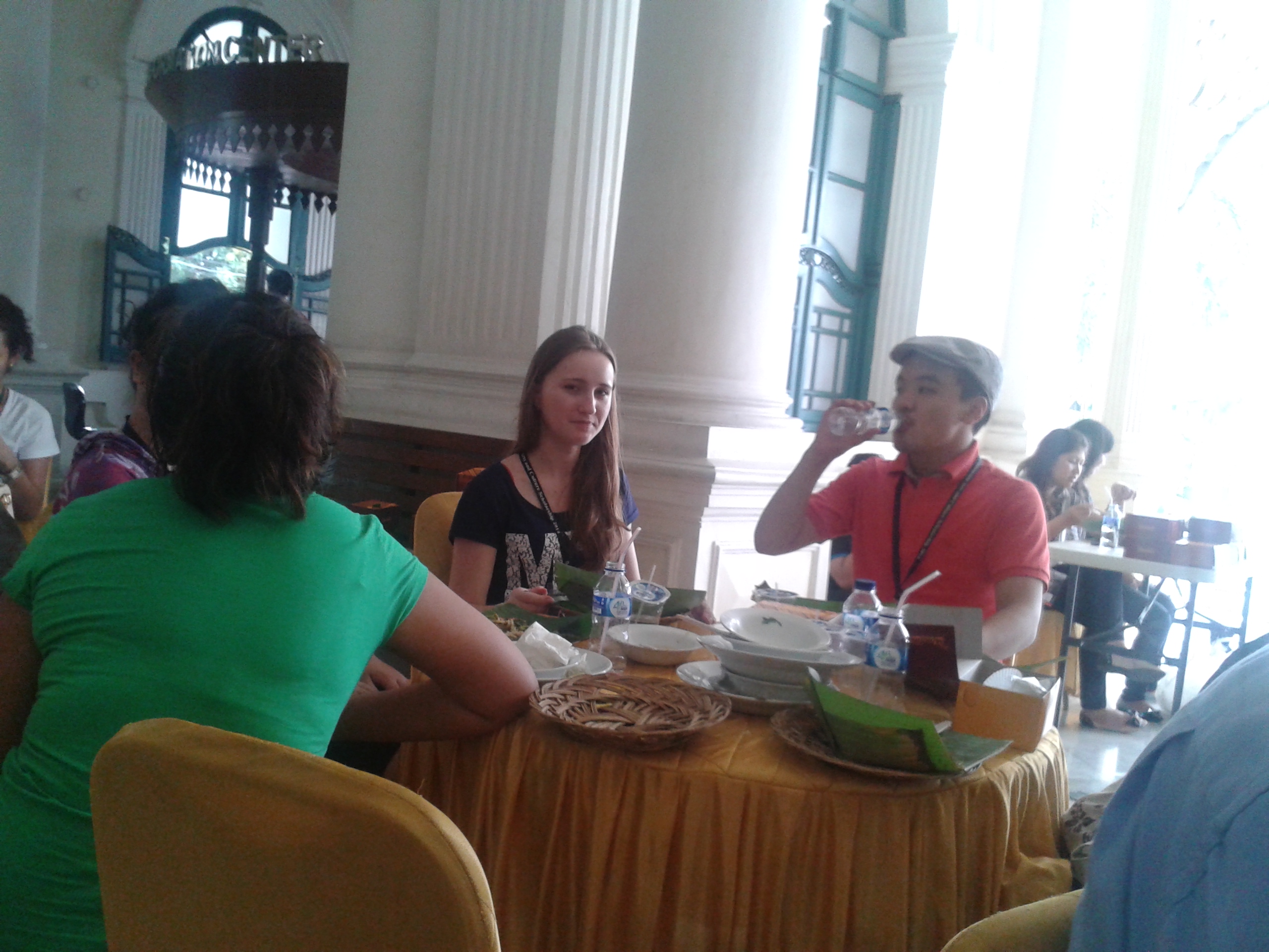 Di Kementerian Luar Negeri kami bertemu dengan penyelenggara program, mereka bercerita kepada kami tentang budaya Indonesia, etiket lokal, bahkan ada kelas tentang kata-kata dasar dalam bahasa Indonesia! Kami juga makan siang di Kemenlu. Saya suka bahwa kebanyakan orang di Indonesia masih punya cukup banyak waktu untuk makan siang dan makan malam. Mereka duduk, berbicara.... I love it.