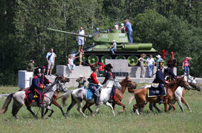 Rusia, 13 Juli 2014. Rekonstruksi sejarah militer dalam festival berkuda internasional yang didedikasikan untuk peringatan ulang tahun Denis Davydov Borodino yang ke-230. (ITAR-TASS)